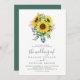 Esta rústica invitación a celebrar bodas con eucalipto de girasol es perfecta para una boda campestre. El diseño floral bohemio incluye girasoles amarillos, flores rosas y un eucalipto verde cazador en la acuarela con un elegante y moderno toque boho.