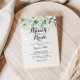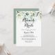 Este brunch de eucalipto con la invitación a la ducha de novia es perfecto para una ducha rústica de boda. Este diseño artístico cuenta con un follaje verde eucalipto de color agua, de dibujos a mano, que inspira la belleza natural.