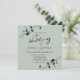 Eucalyptus Greenery Moda Calligrafía Moderna Código QR RSVP Invitación a la Boda Verde Sage... La parte delantera de nuestra invitación a bodas cuadradas botánicas "todo en uno" cuenta con elegantes ramas de eucalipto con salvia y hojas de color esmeralda sobre un fondo de sabio ligero. La caligrafía moderna de la moda muestra el texto para "el Boda de", "y", así como "recepción a seguir", acompañada de una elegante tipografía serif para que el texto sea personalizado. El sabio de la invitación muestra el código QR de su sitio web boda, así como la propia dirección URL del sitio web, lo que permite a los invitados acceder fácilmente a RSVP en línea y ver todos los detalles que normalmente se envían en un paquete boda. El gráfico de código QR de ejemplo y todo el texto de ejemplo (aparte de los elementos caligráficos gráficos) se pueden revisar fácilmente con su propia información sobre la plantilla de personalización. Esta invitación de estilo moderno ahorra tiempo y es elegante, creada especialmente para futuras novias.