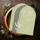 Con una paleta de colores que va desde el marfil hasta el musgo verde y oscuro de primavera, esta colección de bodas presenta un tipo de letra manuscrita y acentos de hojas de eucalipto para añadir ese toque moderno maravilloso. La invitación a la boda en forma de arco que se muestra aquí tiene todo lo anterior con un sorprendente fondo de formas arcadas que la hacen destacarse de la multitud. Agregue los detalles del evento utilizando la plantilla proporcionada. Busque ID901 para ver otras opciones de color y piezas de coordinación para esta colección de bodas única.