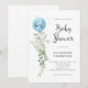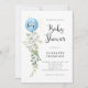 Invitación Eucalyptus con globo azul Es un niño Baby Shower