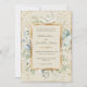 Magnífica y rústica invitación a la boda enmarcada en oro con verduras mezcladas de eucalipto y hojas de oro dibujadas a mano que se usaron para crear esta encantadora invitación. Sólo exquisito. El fondo crema realza el falso guarnecido dorado y las hojas en esta belleza. El oro falso salpicará delante y atrás para crear un aspecto de moda.