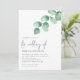 Eucalyptus Deja el Boda de código QR Script Con tu código QR en el sitio web de tu boda en la parte posterior, haciendo que esto sea una opción práctica todo en uno para que tus invitados puedan ver todos los detalles sin necesidad de RSVP por separado y tarjetas de detalles. A la izquierda se encuentra una rama simple de la acuarela verde eucalipto y la redacción está alineada a la derecha. El Boda de se encuentra en un guión de juego de estilos manuscrito y el resto del texto que puede personalizar fácilmente e introducir la URL de su sitio web necesaria para actualizar automáticamente el código QR de ejemplo para llevar a su propia página web.