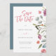 Las coloridas flores acuáticas mezcladas con hojas de eucalipto crean un hermoso borde floral para este personalizable Guardar la invitación a la boda Date. Esta invitación es versátil y se puede utilizar para cualquier invitación cambiando la tipografía.