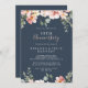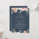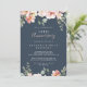 Esta invitación a celebrar el 50 aniversario de este jardín de eucaliptos es perfecta para un evento moderno. El diseño se compone de flores rosas rosas rosas, de color rosa, con hojas de eucalipto en un fondo azul marino oscuro. Cambiar el número para celebrar cualquier hito en el aniversario.