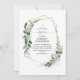 Marco de oro geométrico y acuarela colorido botánico eucalipto verde invitaciones de bautismo.