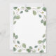 Esta minimalista y moderna invitación al brunch de la ducha nupcial incluye hojas de eucaliptos de color agua y follaje sobre un falso marco geométrico de oro rosa.