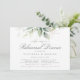 Hermosa invitación a la cena de ensayo con eucalipto acuarela y hojas de oro.