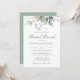 Hermosa invitación al brunch nupcial con eucalipto acuarela y hojas de oro.