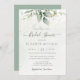Hermosa invitación a la ducha de novias con eucaliptos acuáticos y hojas de oro.