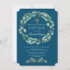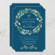 Invitación Eucalyptus Greenery Wreath Cross Boy Bautismo Azul