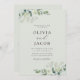 Disfrute del ambiente romántico de su boda con este moderno diseño con hojas de eucalipto acuarelas. Puede agregar más información sobre su boda al dorso de la invitación.