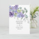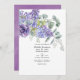 Invitación de bodas a la moda con hojas de eucalipto y plantas suculentas mezcladas con flores en acentos de lila pastel , violeta y violeta. Ideal para cualquier tema o boda en el jardín.