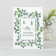 An Iftar dinner invitation, in green and white watercolor Eucalyptus botanical border with script calligraphy. The card is easy to customize with your wording, font, font color, paper shape options, and choice of paper types. The gold and white look stunning on the front, while the green border and event details and rsvp on the backside make this ramadan iftar invitation truly unique.