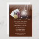 Una invitación perfecta para despedidas de soltero o eventos de casino. El diseño presenta pilas de fichas y cartas de juego que muestran 4 ases sobre fondo marrón con estrellas blancas brillantes.