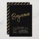 Celebra tu día especial con esta sencilla y elegante invitación de fiesta. Este diseño presenta un script de pincel chic con un diseño limpio y una combinación de colores negro y dorado. Puedes personalizar el texto, la fuente y los colores. Más suministros para eventos están disponibles en mi tienda BaraBomDesign.