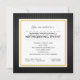 Esta invitación a un evento de trabajo en red para profesionales de negocios presenta un tema de negocios elegante con un fondo negro y rayas verticales de color gris claro. Una caja blanca con un borde dorado incluye texto personalizado para que añada los detalles de la invitación.