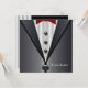 Esmoquin negro elegante, camisa blanca y pajarita roja plantilla de invitación para evento formal o fiesta. Esta invitación de fiesta de esmoquin negro es fácilmente personalizable para su evento simplemente eligiendo el botón "Personalízalo" para comenzar a agregar los detalles de su evento, estilo de fuente, tamaño y color de la fuente, y redacción. Tenga en cuenta que todos los diseños de tarjetas e invitaciones que encontrará en Zazzle son gráficos impresos sin joyas reales, lazos, partes o piezas en relieve, grabadas o añadidas.