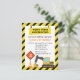 Una fiesta de cumpleaños con el tema de la construcción ofrece mucha diversión para los chicos de cumpleaños que aman los juguetes y máquinas de construcción porque hay tantas ideas fiestas con las que trabajar en este tema! Elija esta invitación que utilice muchos elementos de la construcción como un lindo naranja y excavadora gris, un patrón de rayas inclinadas amarillas y negras, señales de construcción y cono. ¡Los niños invitados estarán tan contentos y emocionados por recibir esta invitación colorida y sorprendente!