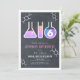 Esta genial invitación a la fiesta de cumpleaños de ciencia para chicas "experimentos de cumpleaños" incluye un fondo de pizarra/pizarra con frascos y un tubo de prueba enmarcado por un borde blanco. En el reverso se ve un fondo rosado con motivos de molécula. Personalice sus necesidades. Puedes encontrar productos coincidentes en mi tienda.