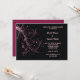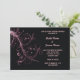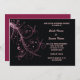 La invitación negra muestra una explosión de remolinos rosas y florales.