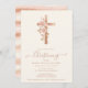 Exquisite Rose Gold Glitter Delicate Floral Christian Cross Romantic Style Christening Invitation Cards.