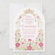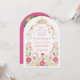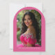 Exquisite Hot Pink Spanish Mexican Inspired Floral Border Embroidery Style Quinceañera Invitation Cards with Back Photo.
