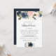 Esta exquisita y florida invitación a cenar es perfecta para un ensayo boda tropical. El diseño se caracteriza por el color rosa a mano, el azul oscuro y las flores caprichosas de la marina, una elegancia inspiradora, clase y belleza natural.