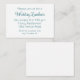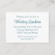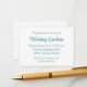 Invite a sus amigos y familiares más queridos a compartir en una celebración íntima con esta hermosa tarjeta de inserción de invitación de boda. Perfecta para eventos más allá de la recepción, como un desayuno de boda, almuerzo o cena familiar, o sellamiento en el templo, esta pequeña tarjeta añade un toque encantador a su suite de invitaciones. Diseñada con una elegancia discreta, la tarjeta presenta texto azul turquesa sobre un fondo blanco crujiente para una estética limpia y moderna; una fuente de escritura sofisticada para el nombre o título del evento; una fuente sans-serif complementaria para todos los detalles adicionales; y un reverso en blanco para notas o personalización adicional. Cada línea de texto es totalmente personalizable, lo que hace que esta inserción sea una opción versátil para cualquier reunión de boda adicional que desee destacar y asegure que sus momentos especiales sean compartidos con aquellos que más importan.