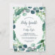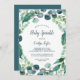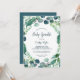 Esta exuberante vegetación y eucalipto invitación a rociar bebés es perfecta para una elegante ducha de bebé en el patio trasero. El moderno diseño botánico presenta magníficos eucaliptos de color azul acuático y hojas verdes.