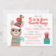 Fiesta de Fa la Llama invitaciones con una Llama vestida para la festividad en un divertido sombrero de santa y cintas y se arrodilla alrededor de su largo cuello. Perfecto para un elefante blanco, un Santa secreto o un canje de regalos para Navidades. ¡Elemento que coincide con este! Necesita ayuda con el diseño, sólo envíeme un correo electrónico a tkatz@me.com ilustracion de ilustracion dibujado por mano de McBooboos