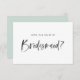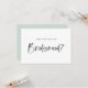 Pídele a amigos y familia que sean parte de su fiesta de bodas con esta tarjeta femenina y moderna "¿Serás mi dama de honor?". Cuenta con letras de pincel de acuarela de carbón oscuro y una parte posterior de color menta. Personalice por el nombre y el mensaje del destinatario.
