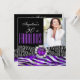 Silencio morado negro de cebra salvaje, joyería de perla morada negra plateada, fabuloso 50, foto en blanco y negro. Elegante, moderna y elegante 50. Invitaciones a la fiesta de cumpleaños. Invitar a todas las ocasiones a añadir una invitación fotográfica. Invitaciones de cumpleaños de todas las Ocasiones. Personalizar con sus propios detalles y edad. Plantilla para Dulce 16, 16, Quinceanera 15, 18, 20, 21, 30, 40, 50, 60, 70, 80, 90, 100, Fabulous product para Mujeres, Chicas, Zizzago creó este diseño PLEASE NOTE ¡imágenes planas! ¡¡¡NO tienen verdadero Purpurina, joyas de diamantes ni golpes de verdad!!!