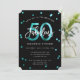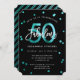 Celebra tu fiesta de cumpleaños número 50 con estas invitaciones modernas y elegantes con letras a mano y diseño brillante en turquesa / negro. El color de fondo se puede cambiar en "personalizar más". Parte de la colección "Fabuloso 50".