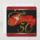 Elegante y hermosa invitación a la fiesta de cumpleaños número 50 de una mujer negra, roja y dorada. Esta invitación a la fiesta de cumpleaños 50, roja y dorada, se personaliza fácilmente para tu evento añadiendo tus detalles, estilo de fuente, tamaño de fuente y color, y redacción.