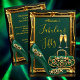Invitación Fabulous Birthday Emerald gems Heel Champagne Gold