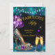 Invitación Fabulous Champagne birthday Purple Teal Gold Heel
