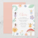 Celebra el cumpleaños de tu pequeña con esta adorable invitación temática de hada, con flores ilustradas y hadas en tonos pastel.