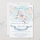 Invitación de cumpleaños con temática de caballo que incluye el ilustracion de un hermoso caballo de magia blanca y Watercolor estrellas doradas con globos de colores pastel y cinta azul para celebraciones!