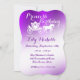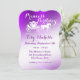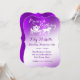 Invitación a la fiesta de cumpleaños de una princesa de cuento de hadas en morado. Caballo de libro de cuentos y diseño de carruajes con corazón.