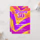 Invitación de cumpleaños Groovy 50 inspirada en el retro con un patrón de ondas retro, daisies y fuentes boho y colores.