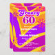 Invitación de cumpleaños Groovy 60 inspirada en el retro con un patrón de ondas retro, daisies y fuentes boho y colores.