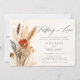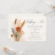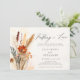 Un espléndido ramo de flores secas, flores silvestres, vegetación y pampas, pintado con una delicada y romántica acuarela, con tonos tierra marrón, beige y naranja, crean un elegante marco floral para la invitación a la fiesta de compromiso de esta pareja de otoño con un tema de amor, que también incluye caligrafía moderna. El diseño es una mezcla atemporal de sofisticación clásica y el encanto alegre de las flores, perfecto para el romántico moderno. Ideal para una excursión en otoño, esta invitación se adapta tanto a la elegante novia y al novio bohemio como a los que planean una fiesta en el jardín, una celebración en el patio trasero o un evento formal en los jardines de un castillo. Una buena elección para las novias que buscan un toque de naturaleza con elegancia refinada.