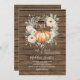 Invitación a la calabaza del Naranja del partido de compromiso Rústico de la madera en el amor Flores blancas elegantes de otoño hojas de la corona de flores