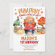 ¡Calabazas, hojas y pilas de heno del niño en la fiesta de cumpleaños! ¡Hace una gran invitación para celebrar cualquier tipo de evento de otoño/otoño de cualquier tipo!