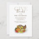 Este diseño se caracteriza por una invitación a la cena de Acción de Gracias, con calabazas acuarelas en otoño, cuernos de abundancia de cornucopia, verduras, un elegante y elegante lugar ideal para el Friendscome, con rústica casa de campo, naranja botánico y verde sabio