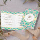 Invitación Falsa Relieve metalizado dorado Verde azulada Boda