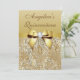 Las invitaciones personalizadas oro de encargo elegante de la celebración de la fiesta de cumpleaños de Quinceañera para quince chicas años con las joyas de oro purpurinoso hermosas de las lentejuelas de una imagen impresa de los colores, modelo de las gemas, oro brillante lindo imprimieron arcos y las imágenes de las cintas y los diamantes digitales bonitos bling las joyas en un fondo elegante de la pendiente del oro con el texto marrón. Observe por favor: Todo invita en Zazzle tiene imágenes impresas del plano. Este con clase, atractivo, glitz y encanto invita para los acontecimientos del dulce 15 se adornan/se imprimen en ambos lados. Invitaciones hermosas, elegantes, de moda, modernas. El texto, la fuente y el color de la fuente pueden todos ser modificados para requisitos particulares. Si usted necesita la ayuda que modifica su producto para requisitos particulares por favor éntreme en contacto con a través de mi tienda. Me placeré ayudar. Tengo productos a juego en mi tienda.