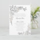 Un impresionante marco floral con peonías como piezas centrales, con flores de boda de relleno y follaje como eucalipto, flores de caldo, helechos, flores de verónica y más, dibujadas a mano con tinta y recubiertas con un efecto falso grabado en relieve, decora esta elegante y sofisticada plantilla formal de invitación a la boda que incluye caligrafía elegante con delicados florecimiento de los nombres, así como los nombres de los padres en la redacción, los padres de la novia organizando. El diseño en blanco y negro, con un champán muy delicado y acentos de inspiración dorada, acompaña a la perfección a un ambiente formal y elegante y se integra con muchos colores. Esta invitación a una boda artística es una encantadora elección para parejas que aman el arte, los diseños artísticos, el arte original y único y los diseños bodas tradicionales y formales. Personalizar cada línea de texto. Elementos coincidentes disponibles.