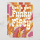 ¡Retrocedan en el tiempo y celebren un fab 50 con esta groovy invitación de cumpleaños! Con un fondo retro y giratorio en tonos clásicos de los años 70, un texto audaz de "Vamos a conseguir 50 dólares" con una fuente divertida, y tres reinas bailadoras feroces en la parte inferior, este diseño da vida a la fiebre disco. La parte trasera mantiene viva la vibra con un fondo a juego, una plaza central para los detalles de su fiesta de personalizable y dos bailarines más listos para boogie. Gracias por revisar este diseño lejano, si te hace sonreír, ¡démosle un aspecto!